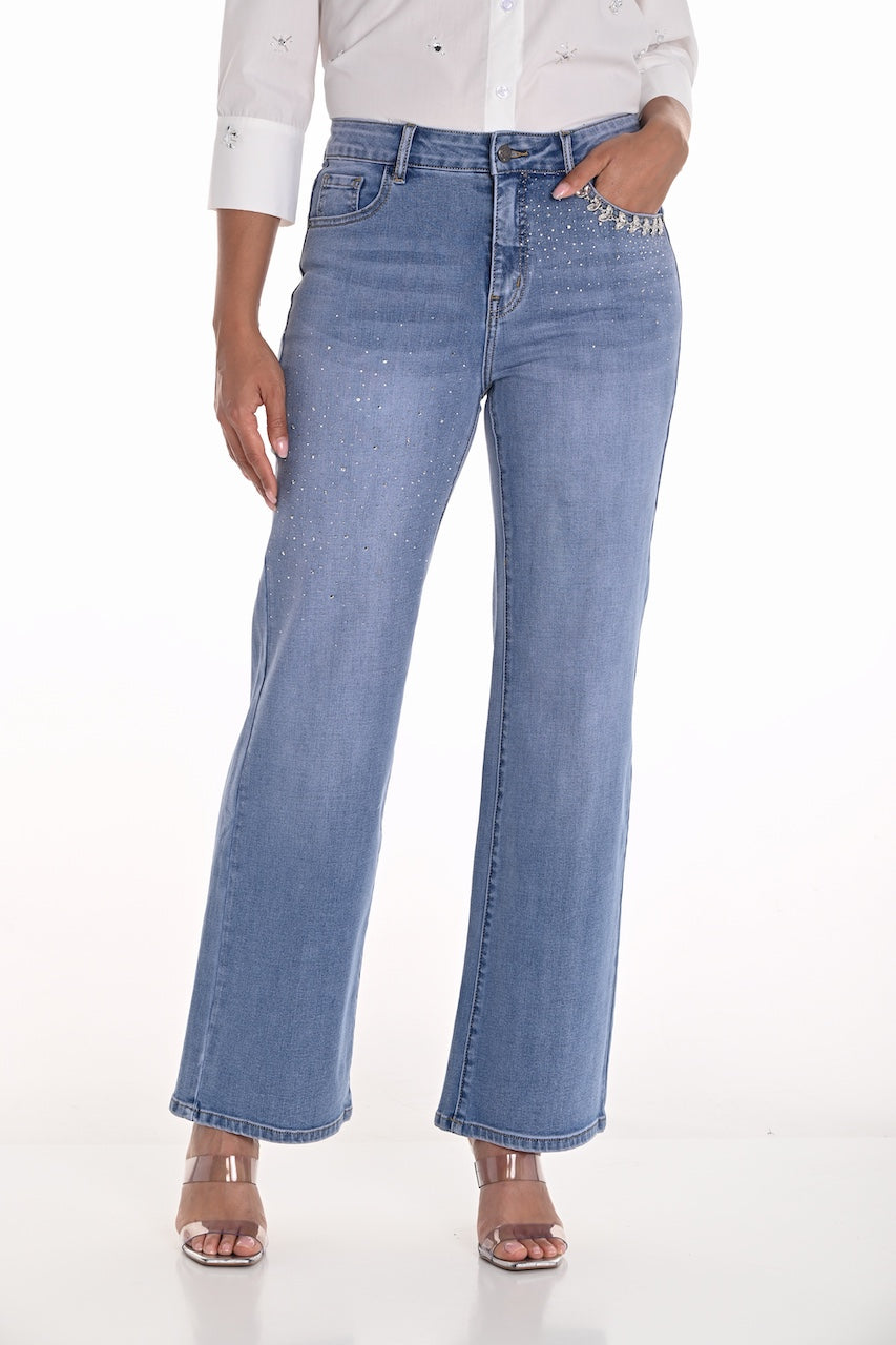 Jean évasé taille haute avec détails bijoux – Frank Lyman 251501