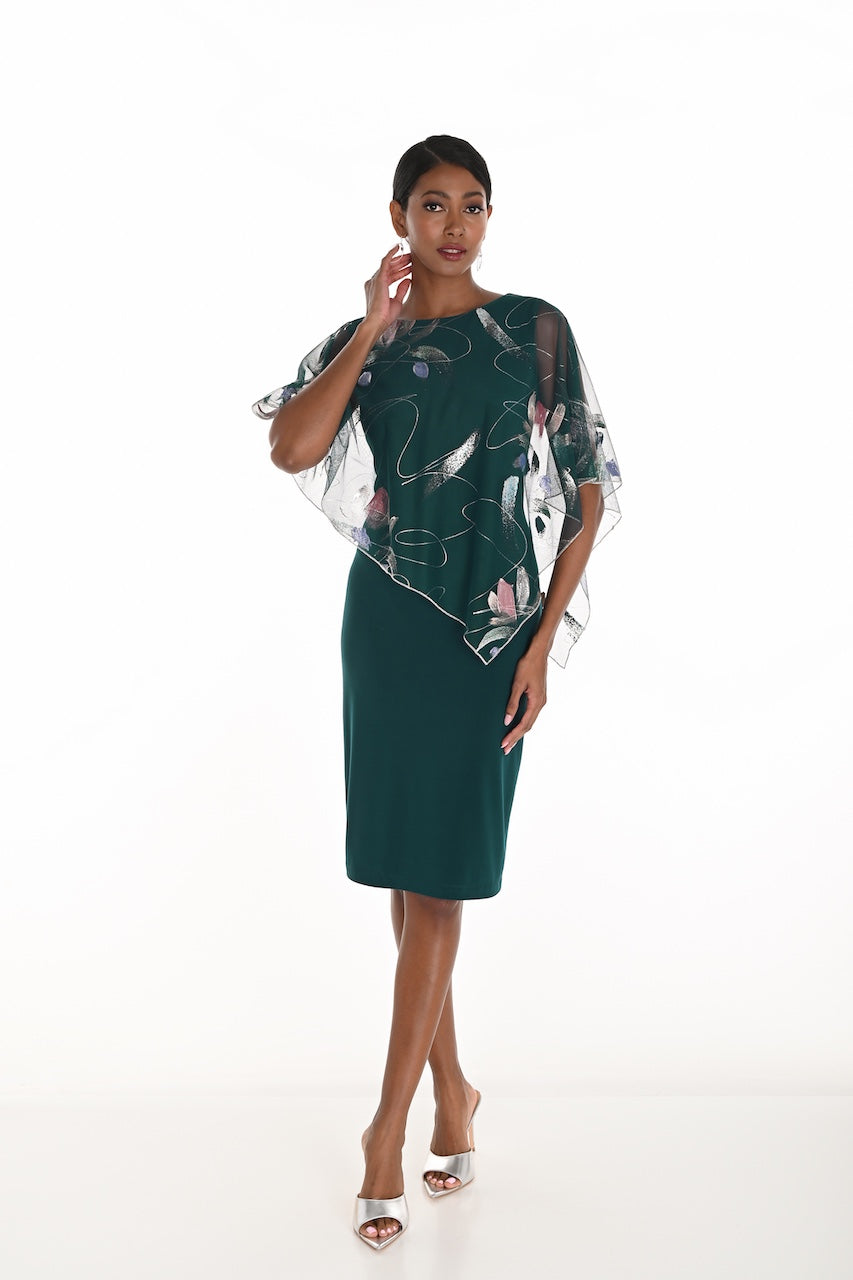 La robe Frank Lyman 259141 se distingue par sa silhouette fourreau flatteuse et son superbe motif floral qui apporte une touche romantique et élégante. Son voile transparent orné de bijoux scintillants ajoute une dimension luxueuse tout en créant un effet de superposition léger et gracieux.