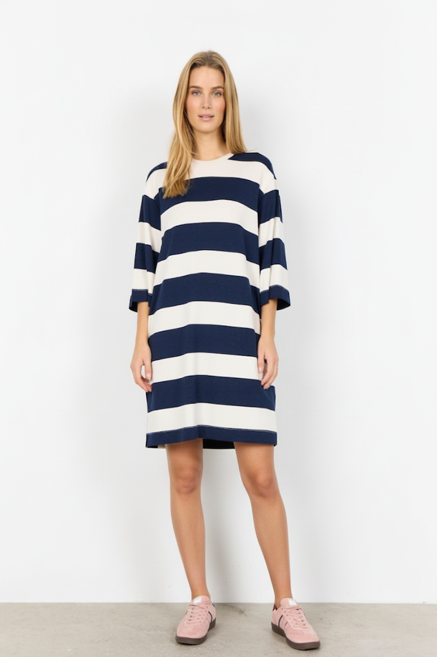 La tunique SC-BARNI 49 de Soya Concept (27424) allie confort et style grâce à sa matière douce et extensible. Son motif rayé audacieux, son encolure ronde et sa coupe décontractée en font une pièce moderne et flatteuse. Avec ses manches 3/4, elle se porte parfaitement avec des leggings ou seule pour un look casual et élégant.