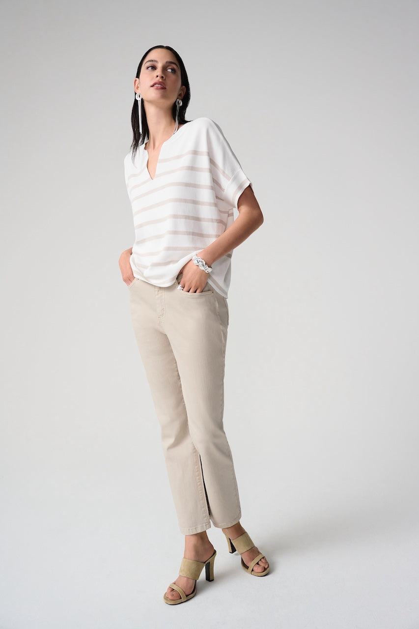 Le jean Margot 261995 de Joseph Ribkoff , est pensé pour devenir un essentiel du quotidien. Sa coupe droite classique et sa longueur cheville offrent une silhouette flatteuse et facile à agencer. Confectionné dans le denim Featherweave™ exclusif à Joseph Ribkoff, il se distingue par sa légèreté et son extensibilité exceptionnelle, procurant une sensation de confort comparable à un jean déjà parfaitement porté. Son délavage d’inspiration vintage complète ce modèle intemporel que l’on porte encore et encore.