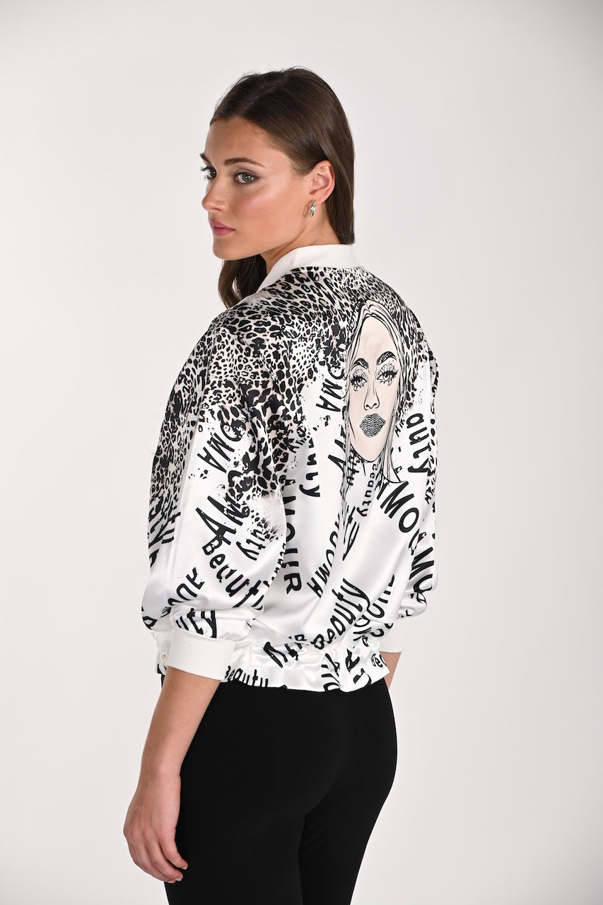Le blouson au style affirmé 261657 de Frank Lyman apporte une touche audacieuse à la tenue. Son imprimé mélangeant motifs animaliers et textuels crée un effet unique, tandis que sa coupe ample et ses manches évasées offrent confort et liberté de mouvement. Parfait pour compléter un look décontracté avec caractère.