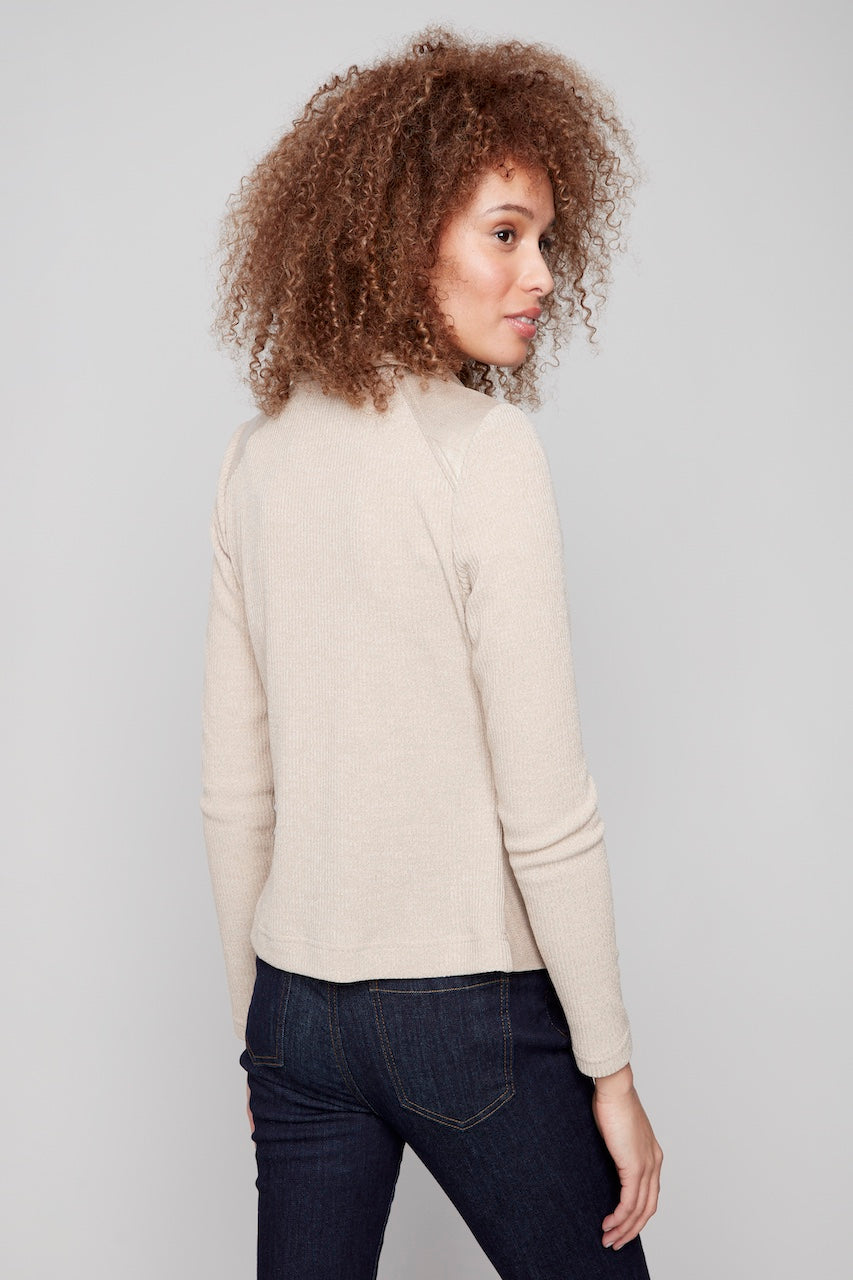 Veste en maille côtelée et cuir vintage – Charlie B | C6273X-704B